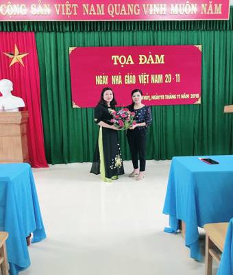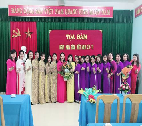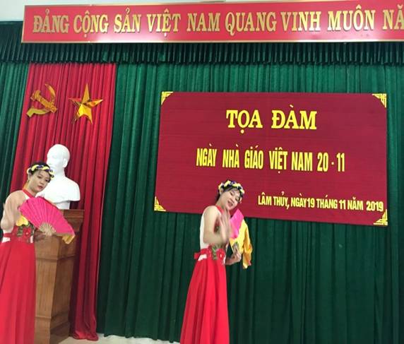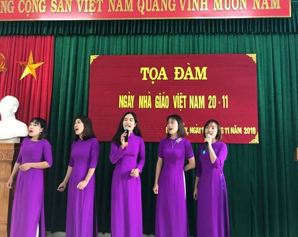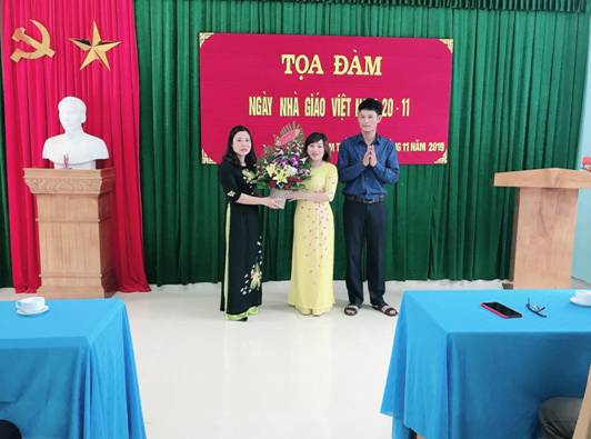 Đồng chí Hoàng Thị Cúc – Bí thư Chi bộ - Hiệu trưởng nhà trường đã đọc diễn văn chào mừng ngày hiến chương các nhà giáo và đã ôn lại truyền thống tôn sư trọng đạo tốt đẹp của dân tộc và những tấm gương nhà giáo tiêu biểu. Đồng thời đ/c cũng đã chia sẻ những tâm tư, tình cảm, những lời tâm sự chân thành nhất về nghề giáo, niềm tin vào sự nghiệp trồng người của giáo dục nói chung và xã nhà nói riêng.