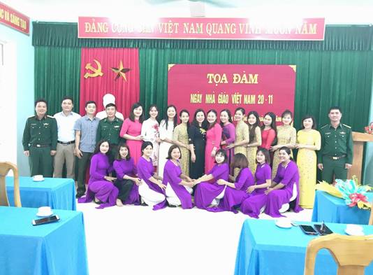 Không khí thật đầm ấm, hạnh phúc hân hoan khi các cô giáo đón nhận tình cảm yêu thương qua những tiếng hát của tập thể giáo viên và của quý vị đại biểu. Niềm hạnh phúc đó còn được nhân lên khi các cô giáo nhận những món quà của phụ huynh học sinh, của đ/c Lãnh đạo xã, lãnh đạo Đồn Biên Phòng Làng Ho, lãnh đạo Binh đoàn 15, Lâm trường Khe giữa là những bông hoa hồng tươi thắm.