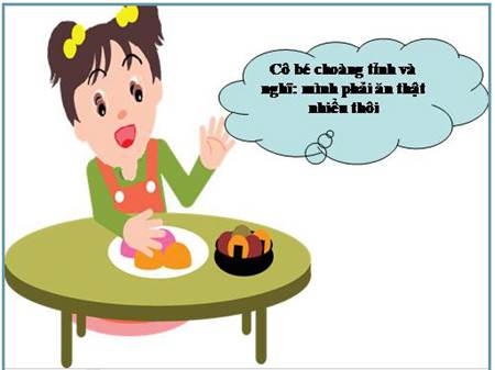 Đúng lúc đó, cô bé choàng tỉnh và giật mình nghĩ: “Mình phải ăn thật nhiều và chăm tập thể dục mới được!”